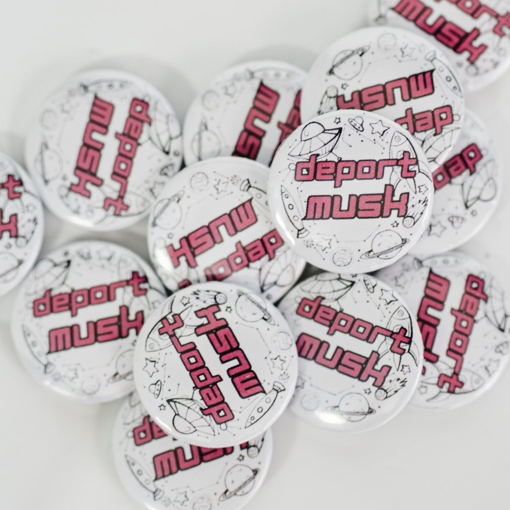 Billionaires hoard wealth—let’s send them packing. This handmade 1.25″ “Deport Musk” metal button is a bold statement against greed, exploitation, and billionaire nonsense. Perfect for jackets, bags, hats, or anywhere you want to spark conversation.