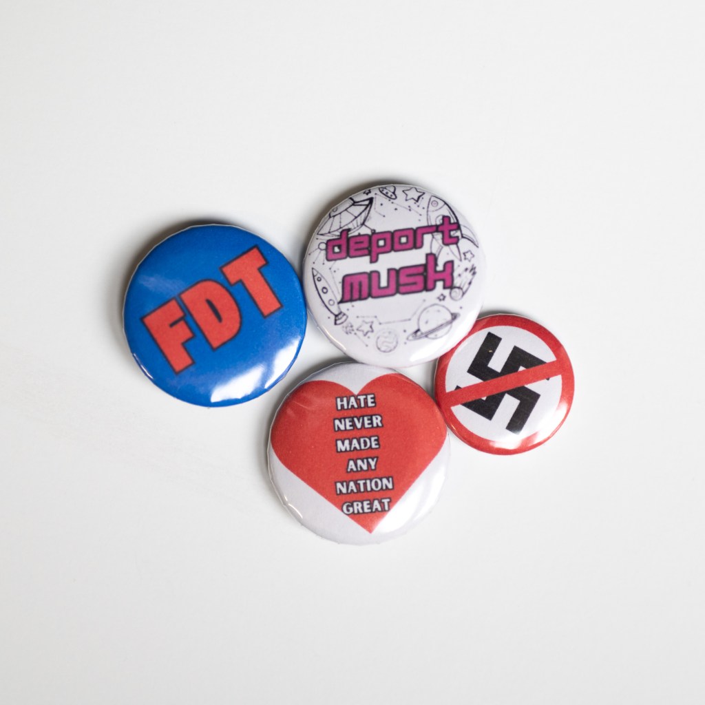 Facts. Hate has never made any nation great—but solidarity, justice, and community do. This handmade 1″ metal button is a reminder that a better world is built on love, not division. Wear it on your jacket, bag, or hat and let the message speak for itself.